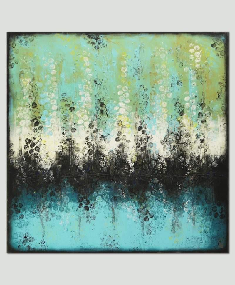 This abstract painting with bubbles is made with many layers of acrylic paint, applied in firm brush strokes. This minimalist piece brings tranquility to the room and fits into any living style.