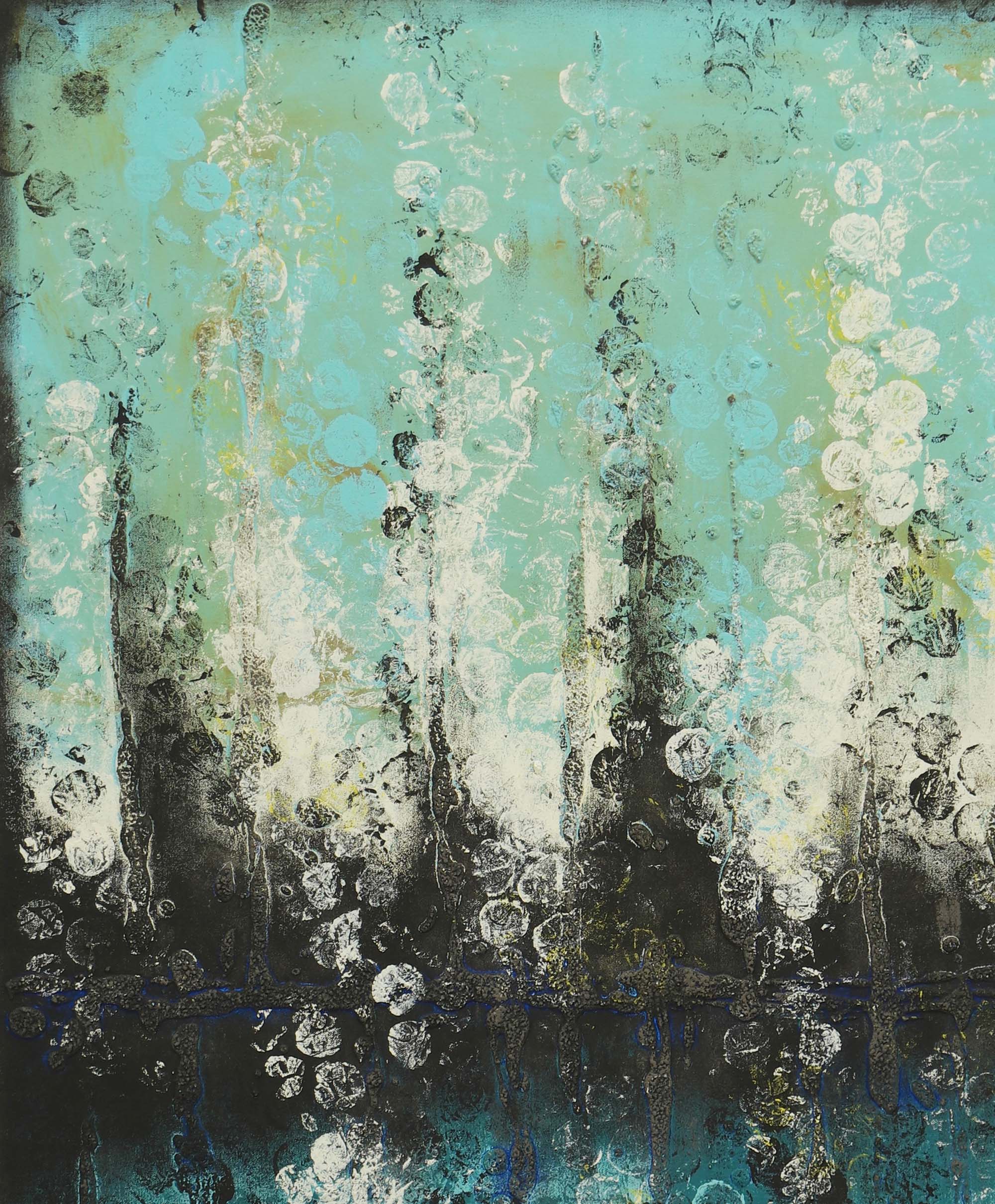 This beautiful abstract painting is made with many layers of acrylic paint, creating depth and texture.