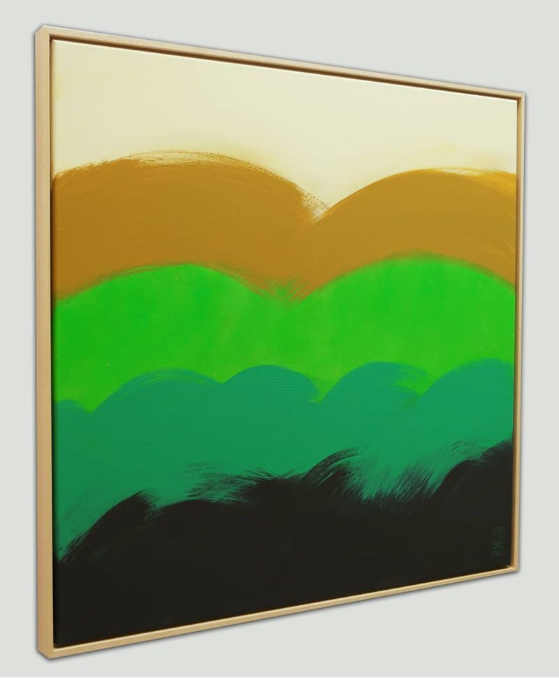 This is an original painting, designed and painted by Ronald Hunter, an abstract Dutch artist from Rotterdam, known for his fresh layering of colors.