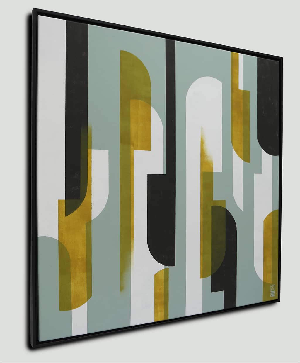 This is an original painting, designed and painted by Ronald Hunter, an abstract Dutch artist from Rotterdam, known for his fresh layering of colors.